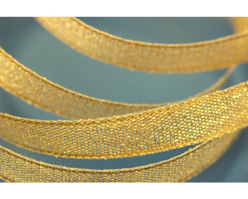 » » » Organzaband Meterware, ca. 10mm breit, goldfarben, beidseitig gefasst
