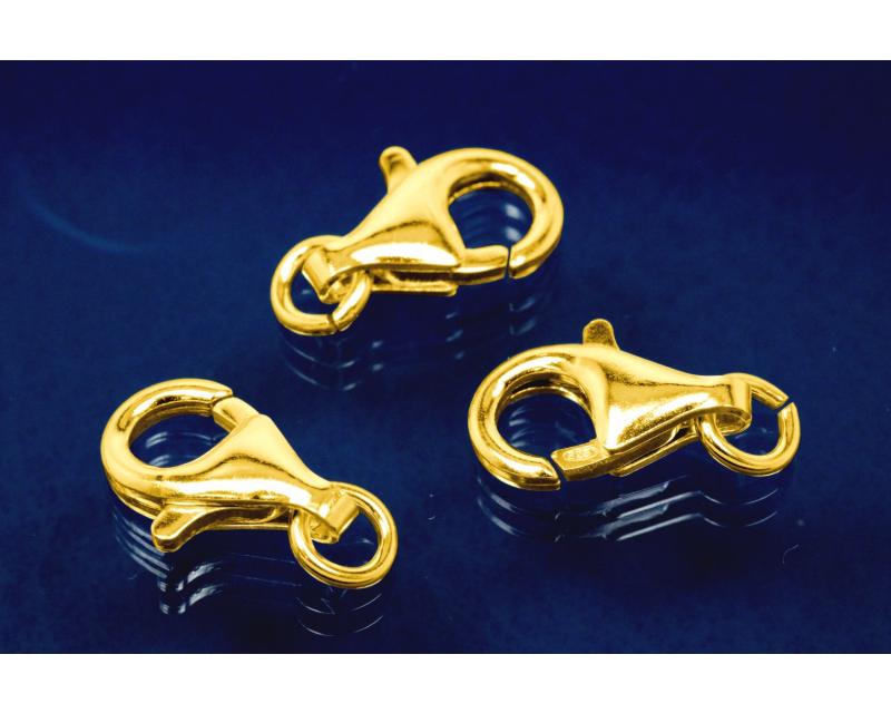 Trigger Clasp with open Ring 13 mm 925/- Silver gold plated