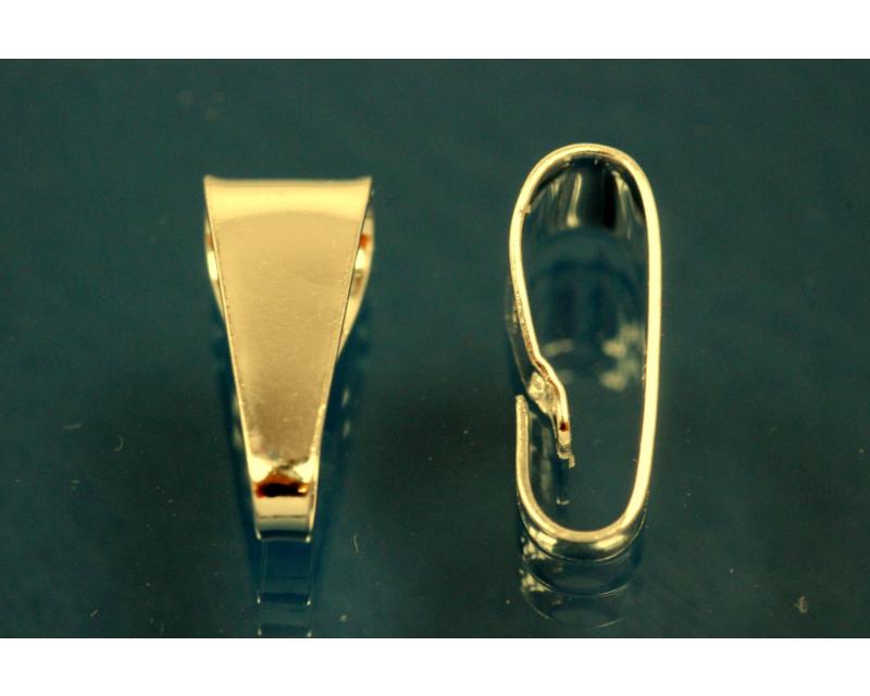 Anhängerschlaufe 925/- Silber vergoldet Maße 5,5 x 1,8 x 13,0mm Innen 3,4 x 2,7 x 11,8mm, Diese wechselbare Schlaufe mit Ihrer Klippfunktion ist ein unverzichtbares Schmuckersatzteil für jeden Schmuckhersteller. Einfach die Schlaufe in die Anhängeröse einklippen und das fertige Collier wie z.B Kautschuk-, Leder-, Seiden-, Perl-, ein- oder mehrreihiges Edelstahlreifcollier einfädeln. Natürlich können Sie auch eine Silberkette mit entsprechenden Maßen benützen. Deshalb nennt man diese Schlaufe auch Klippschlaufe, weil Sie ein praktisches Schmuckersatzteil darstellt. Ca.-Gewicht per Stück. 0,45 gr.