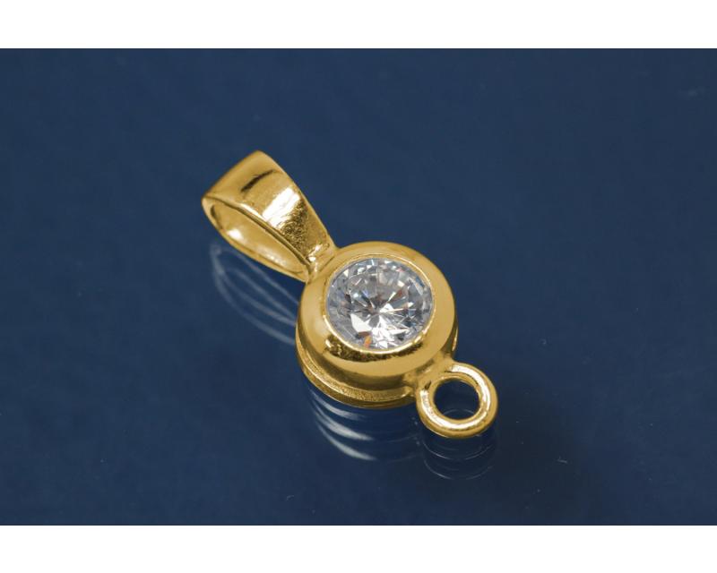 Anhängerschlaufe 925/- Silber vergoldet mit Steineinfassung und Einhängeröse