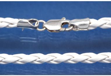 Necklace, braided leather cord white Ø3mm, with trigger clasp 925/- Silver, length 45cm