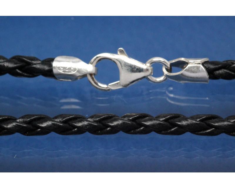 Necklace, braided leather cord black Ø3mm, with trigger clasp 925/- Silver, length 50cm