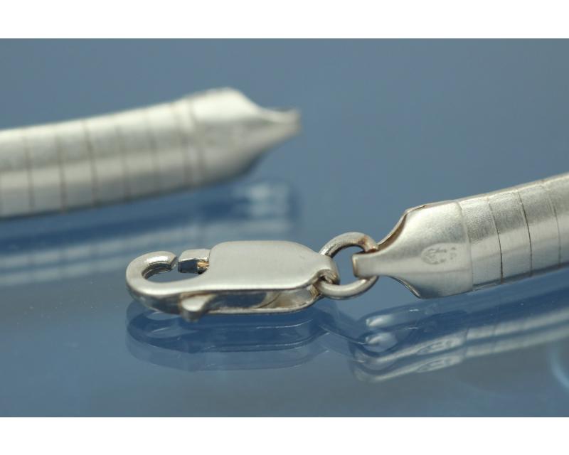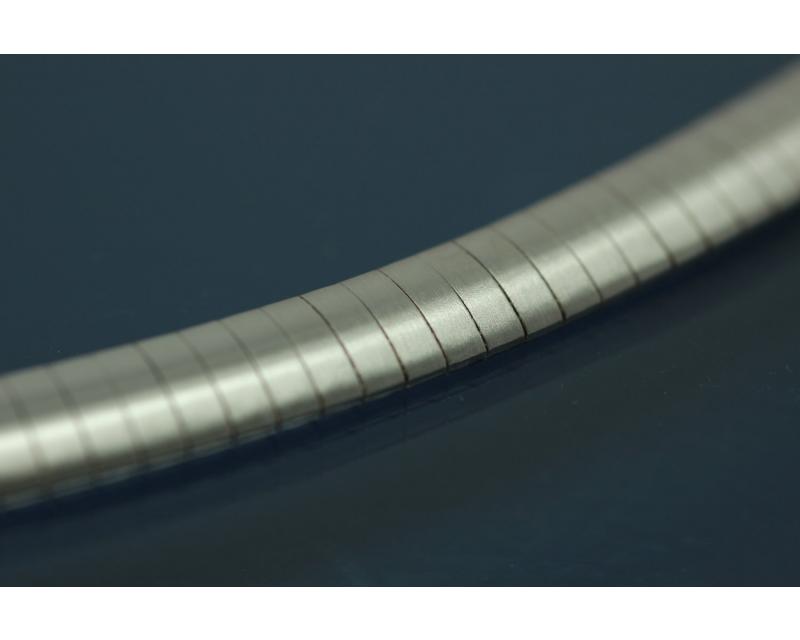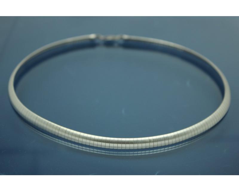 Omega necklace solid sanded (not hollow) approx. size width 6,1mm, thickness 1,6mm, with trigger clasp, approx. Size end part width 6,2mm, thickness 3,3mm, 925/- Silver, Length approx size 43cm approx. Weight per piece 27,00gr.