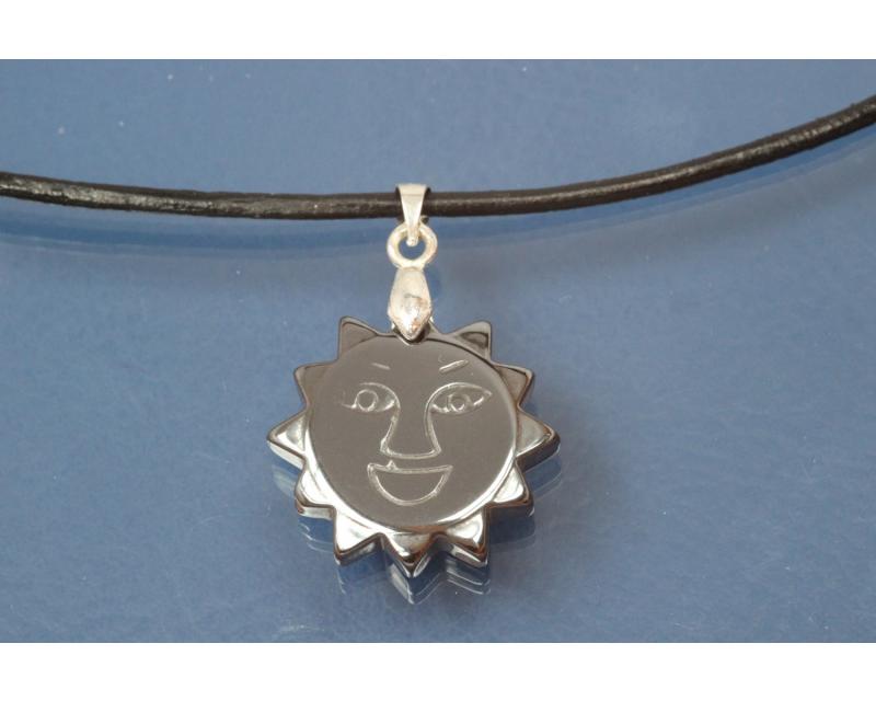 » » Necklace, leather cord Ø2mm, with Hematite pendant sun, length adjustable 25cm to 50cm