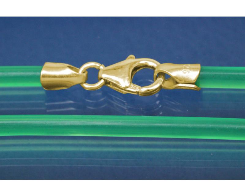 Necklace, PCV-Rubber green Ø3mm, with trigger clasp 925/- Silver gold plated, length 60cm