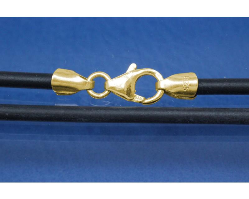 Collier, Kautschuk schwarz Ø1,5mm, mit Karabiner 925/- Silber vergoldet, Länge 42cm