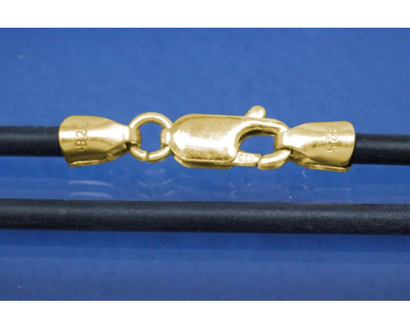 Rubber necklace Ø2mm, with trigger clasp 925/- Silver gold plated, length 42cm