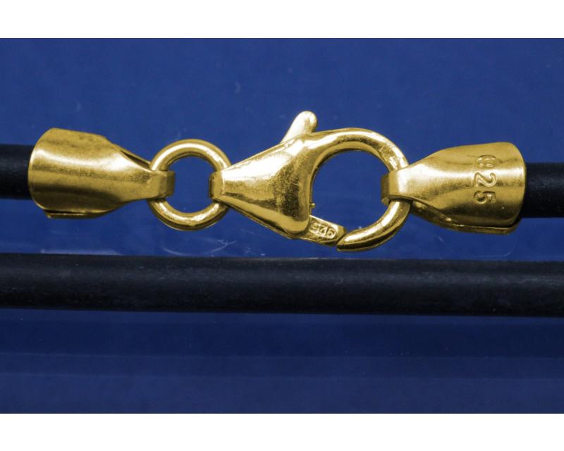 » » Rubber necklace Ø5mm, with trigger clasp 925/- Silver gold plated, length 45cm