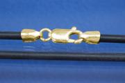 Kautschukreif Ø1,5mm, mit Karabiner 925/- Silber vergoldet, Länge 55cm