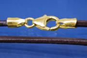 Collier, Lederschnur rund braun Ø2mm, mit Karabiner 925/- Silber vergoldet, Länge 42cm