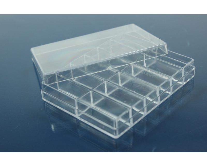 Box, clear, 12 compartments, dimensions: inside 67x51x10mm, outside 71x55x13mm, compartments 25x10x10mm