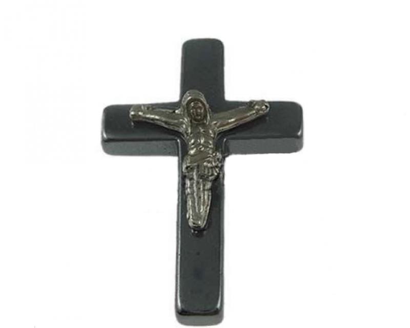 » » » » Hämatit Anhänger Kreuz mit Christus aus Metall silberfarben, ca. 23.5x35mm, Bohrung ca. 1,2mm