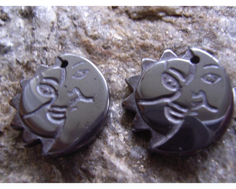 » » » » Hämatit Anhänger Sonne & Mond, ca. 21,5x22mm, Bohrung ca. 1,2mm