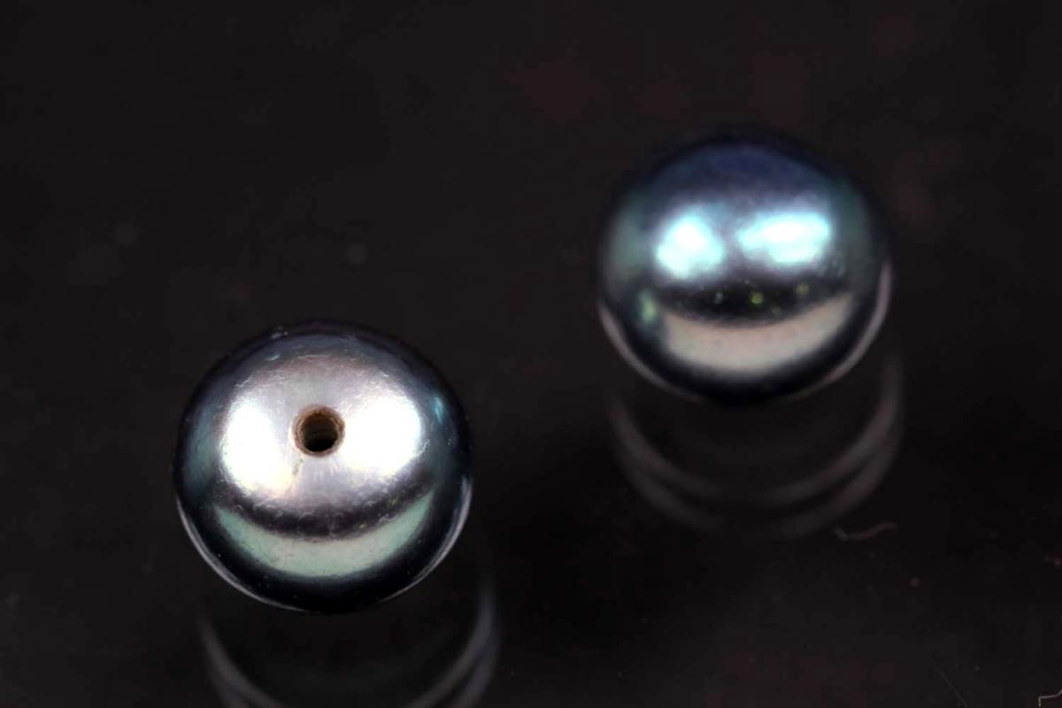 Süßwasserperlen, angebohrt Button, ca.Maße Ø8,5-9,0mm, Hoch 6,0-6,5mm, Farbe peacock