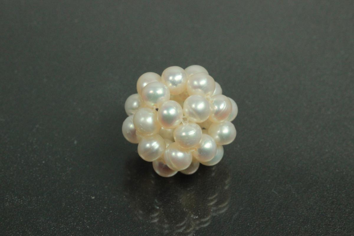 Perlball geflochten ca.Ø18mm, Süßwasserzuchtperlen, Farbe weiss, Einzelperlgrösse ca. 4,5-5mm