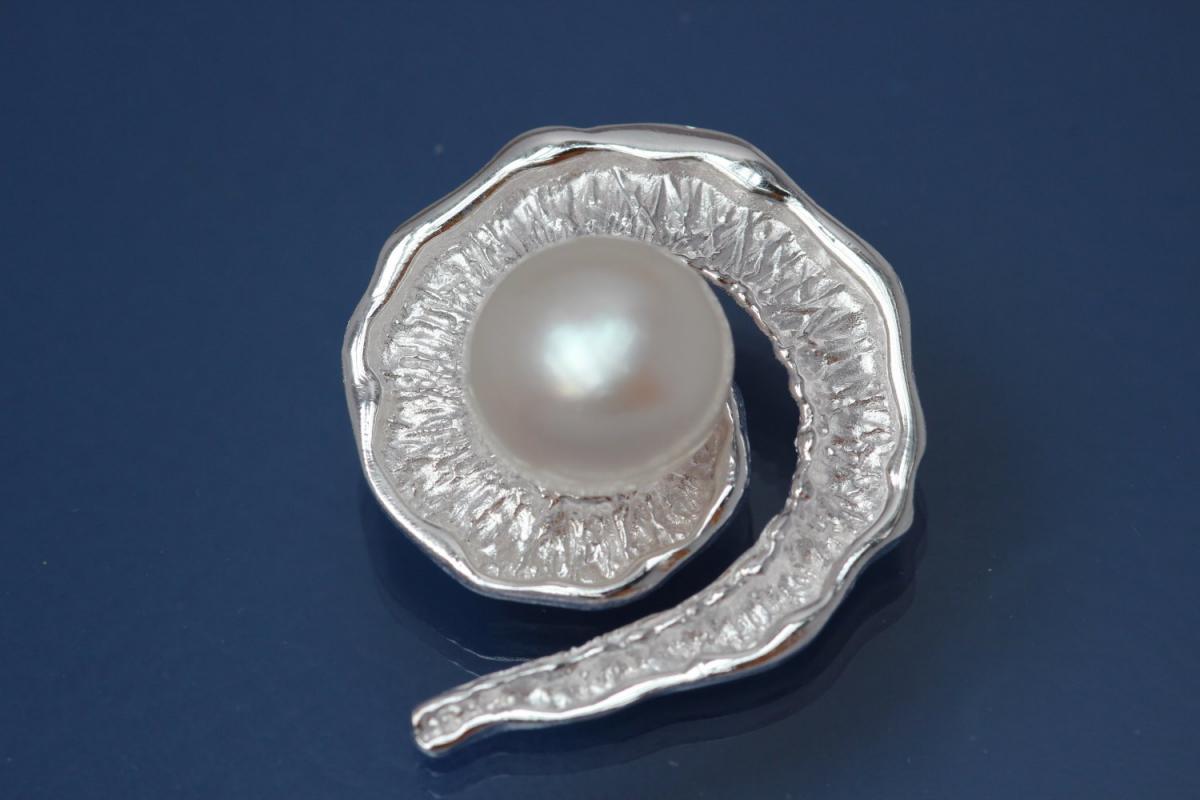Anhänger Spirale mit SW-Perle 925/- Silber ca. Maße H 31mm, B 27,0mm, MS 11,4mm, mit SW-Perle ca.11mm, ca. Schlaufeninnenmaße auf Rückseite H 7,4mm, B 4,4mm (ca.Maße wurden an der höchsten und breitesten und stärksten Seite bzw. Fläche gemessen) Die Schlaufe wurde verdeckt auf der Rückseite angebracht. Die Oberfläche wurde poliert und zum Schutz des Grundmetalles 925/- Sterlingsilber und als zusätzlichen Anlaufschutz galvanisch mit hochwertigem Silber veredelt. Gewicht ca. 7,75gr
