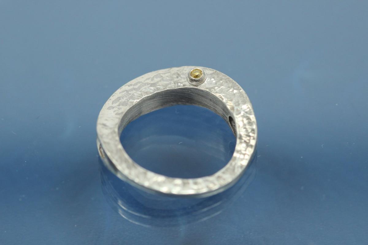 » » » » Colliermittelteil 925/- Silber rhodiniert mit gelben natural Brillant vollschliff, 0,02 ct gefasst, Fläche beide Seiten gehämmert ca Maße AØ 20,5 IØ 14,5mm Bohrung Ø2,2mm Stärke 4,5 im Verlauf 1,3mm