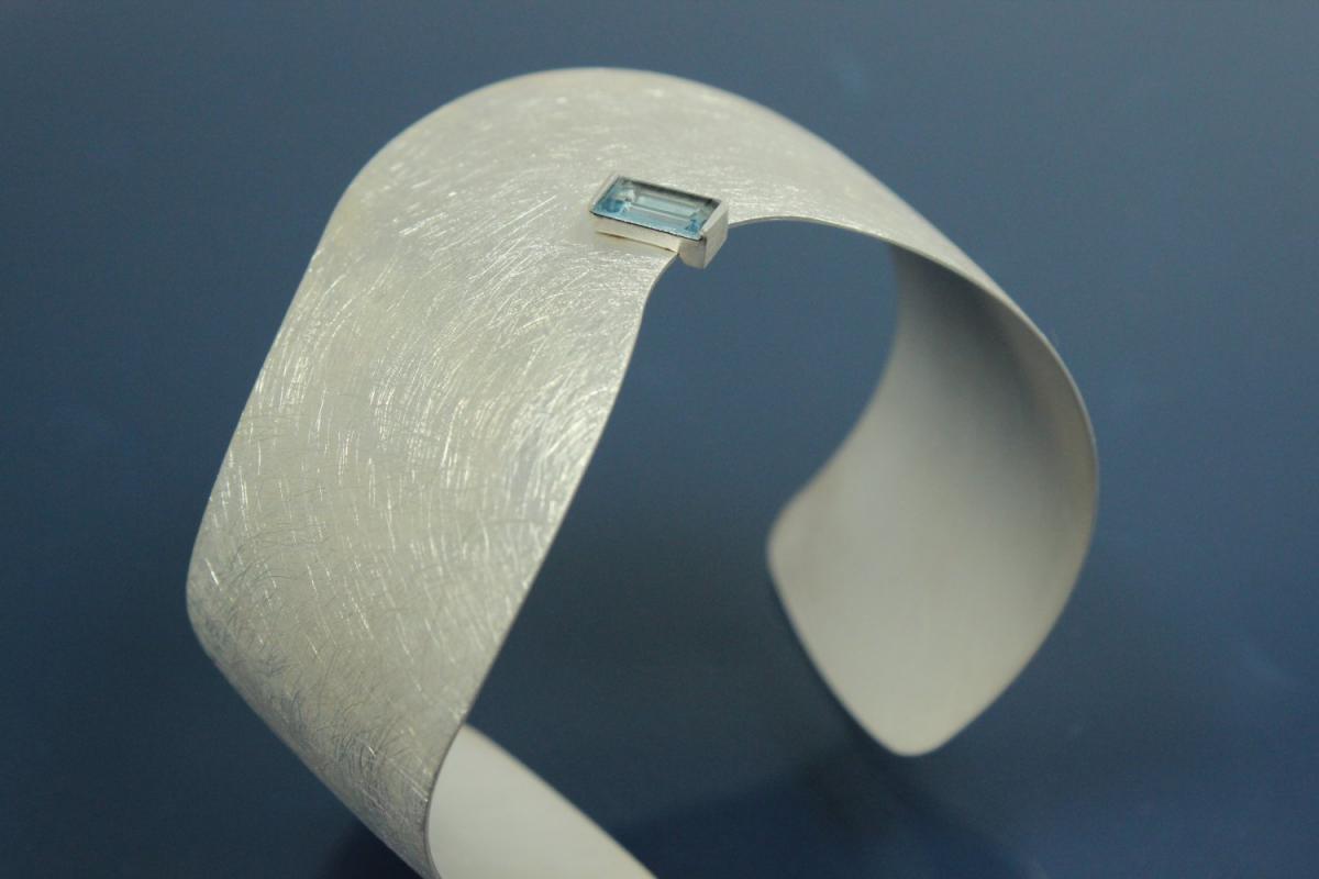 Armspange mit synth. Spinell Baguett ca. 4x8mm, 925/- Silber, mattiert, ca. 29mm breit, Innenmaß ca. 6,5cm