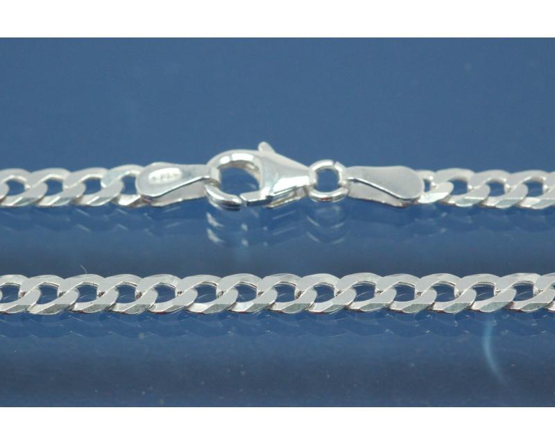 Panzerkette massiv (nicht teilhohl) 6 fach diamantiert, ca.3,30 breit x 0,80mm stark mit Karabiner, ca Maße Endglied B 3,55mm, MS 2,6mm, 925/- Silber, Länge ca. 40cm Die Oberfläche wurde poliert und zum Schutz des Grundmetalles 925/- Sterlingsilber und als zusätzlichen Anlaufschutz galvanisch mit hochwertigem Silber veredelt. Gewicht per Stück ca. 5,42gr.