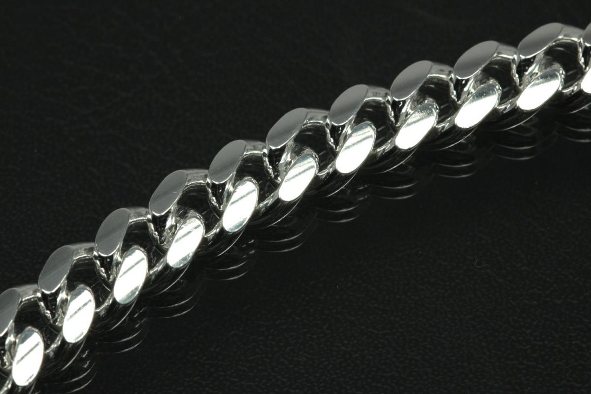 Panzerkette gedrückt 925/- Silber mit Karabiner ca. Breite 6,0mm, in verschiedenen Längen erhältlich. "Tauchen Sie ein in die Stärke und Robustheit unserer Panzerkette in 925er Silber. Diese schwere Ausführung ist inspiriert von den Kettenlaufwerken eines Panzers und strahlt eine unvergleichliche Männlichkeit aus. Die bombierte Form der Kettenglieder erinnert an die Laufposter eines Panzers und verleiht der Kette ein markantes, kraftvolles Design. Tragen Sie diese Kette, um Ihre innere Stärke und Entschlossenheit zu unterstreichen. Ein Ausdruck von Stil und Kraft, der Ihre Persönlichkeit perfekt widerspiegelt." Diese Silberkette 925/- Silber ist massiv (nicht hohl oder teilhohl) mit Karabinerverschluss und besitzt ein gedrücktes auch bombiert genanntes ovales Design.Die Kettenmuster ca. Maße, Breite 6,0mm, Höhe 2,8mm, ca Maße Endglied Breite 6,1mm, Höhe 3,3mm, (Sämtliche ca.Maße wurden an der höchsten und breitesten und stärksten Seite bzw. Fläche gemessen. Sollten sich die ca. Maße um ein Endteil- bzw. Endstück handeln, sind diese maßgebend für die Schlaufeninnenmaße des aufzufädelnden Teils bzw. Anhängers). Die Oberfläche wurde poliert und zum Schutz des Grundmetalles 925/- Sterlingsilber und als zusätzlichen Anlaufschutz galvanisch mit hochwertigem Silber veredelt. Gewicht per Stück ca. 37,67gr.