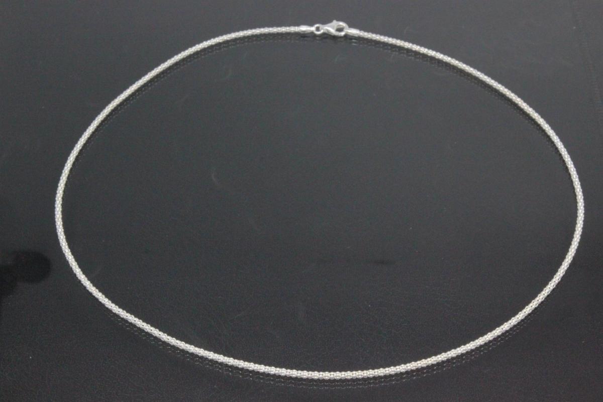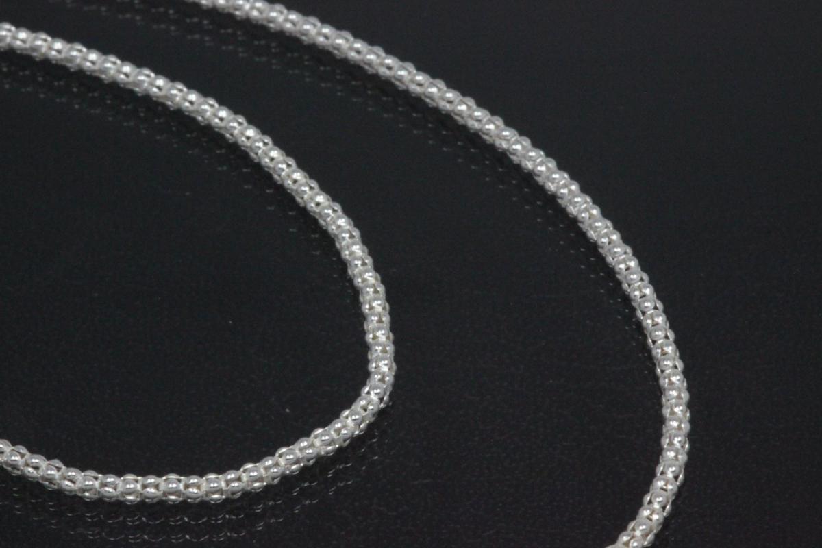 Popkornkette ca.Maße Ø2,0mm mit Karabiner 925/- Silber, ca. Maße Endglied AØ 2,6mm. (Sämtliche ca.Maße wurden an der höchsten und breitesten und stärksten Seite bzw. Fläche gemessen. Sollten sich die ca. Maße um ein Endteil- bzw. Endstück handeln, sind diese maßgebend für die Schlaufeninnenmaße des aufzufädelnden Teils bzw. Anhängers). Die Oberfläche wurde poliert und zum Schutz des Grundmetalles 925/- Sterlingsilber und als zusätzlichen Anlaufschutz galvanisch mit hochwertigem Silber veredelt.