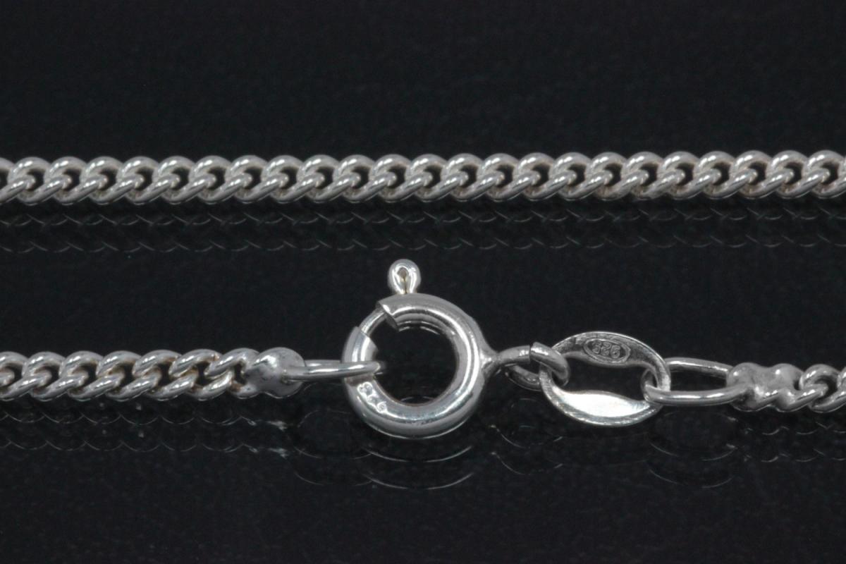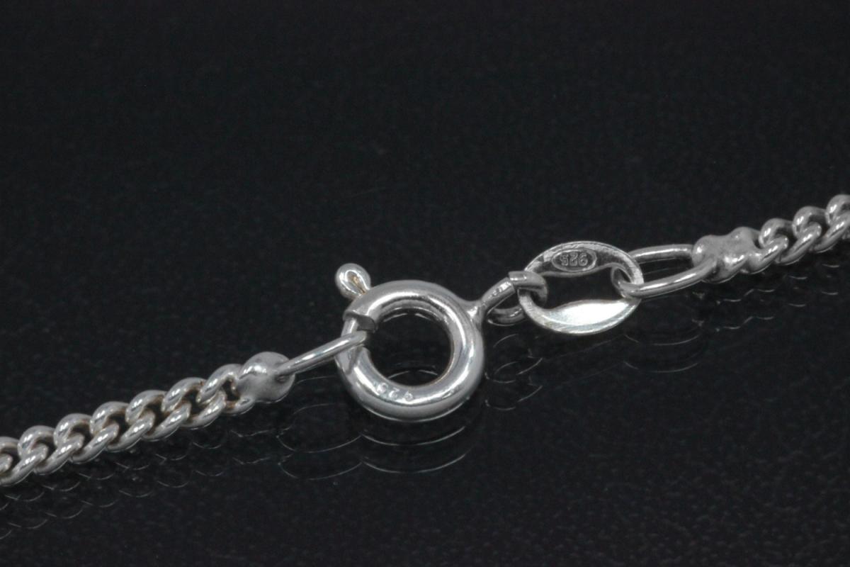 Rundpanzer-Collierkette 50cm lang mit Federring 925/- Silber, ca 2,1mm breit, Endglied Öse Außen Ø 3,6mm, Drahtstärke Ø 0,65mm, (Sämtliche ca.Maße wurden an der höchsten und breitesten und stärksten Seite bzw. Fläche gemessen. Sollten sich die ca. Maße um ein Endteil- bzw. Endstück handeln, sind diese maßgebend für die Schlaufeninnenmaße des aufzufädelnden Teils bzw. Anhängers). Die Oberfläche wurde poliert und zum Schutz des Grundmetalles 925/- Sterlingsilber und als zusätzlichen Anlaufschutz galvanisch mit hochwertigem Silber veredelt. Gewicht per Stück ca. 6,5gr