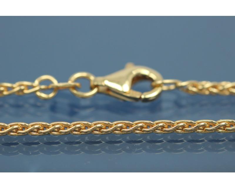 Zopfkette massiv halbrund (nicht teilhohl) ca. Maße Ø 2,0mm, mit Karabiner, ca Maße Endglied ovale Öse außen 3,0mm x 4,5mm, Drahtstärke MS 0,5mm,333/- Gelbgold, Länge ca. 45cm (Sämtliche ca.Maße wurden an der höchsten und breitesten und stärksten Seite bzw. Fläche gemessen. Sollten sich die ca. Maße um ein Endteil- bzw. Endstück handeln, sind diese maßgebend für die Schlaufeninnenmaße des aufzufädelnden Teils bzw. Anhängers). Die Oberfläche wurde poliert und zum Schutz des Grundmetalles 925/- Sterlingsilber und als zusätzlichen Anlaufschutz galvanisch mit hochwertigem Silber veredelt. Gewicht per Stück ca. 4,83gr.