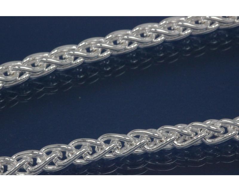 Zopfkette massiv ca.Maße Ø4,3mm mit Karabiner, ca. Maße Endglied AØ 5,1mm, 925/- Silber, Länge ca. 45cm (Sämtliche ca.Maße wurden an der höchsten und breitesten und stärksten Seite bzw. Fläche gemessen. Sollten sich die ca. Maße um ein Endteil- bzw. Endstück handeln, sind diese maßgebend für die Schlaufeninnenmaße des aufzufädelnden Teils bzw. Anhängers). Die Oberfläche wurde poliert und zum Schutz des Grundmetalles 925/- Sterlingsilber und als zusätzlichen Anlaufschutz galvanisch mit hochwertigem Silber veredelt. Gewicht per Stück ca. 23,99gr.