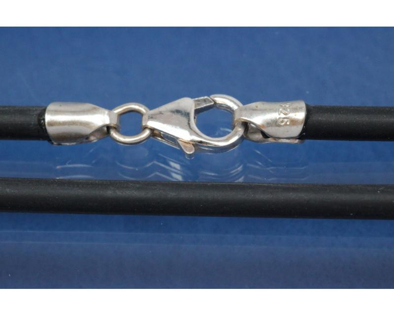 Kautschukreif Ø2mm, mit Karabiner 925/- Silber, Länge 50cm