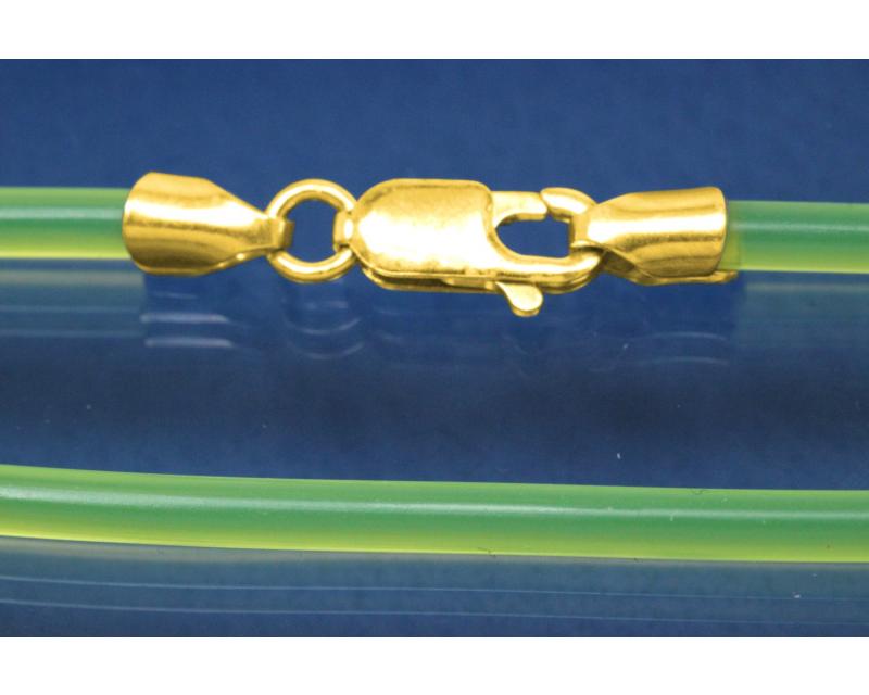 Collier, PVC-Kautschuk gelb Ø3mm, mit Karabiner 925/- Silber vergoldet, Länge 50cm