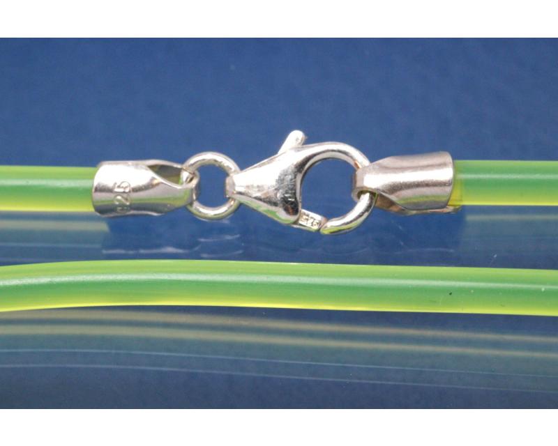 Collier, PVC-Kautschuk gelb Ø3mm, mit Karabiner 925/- Silber, Länge 50cm