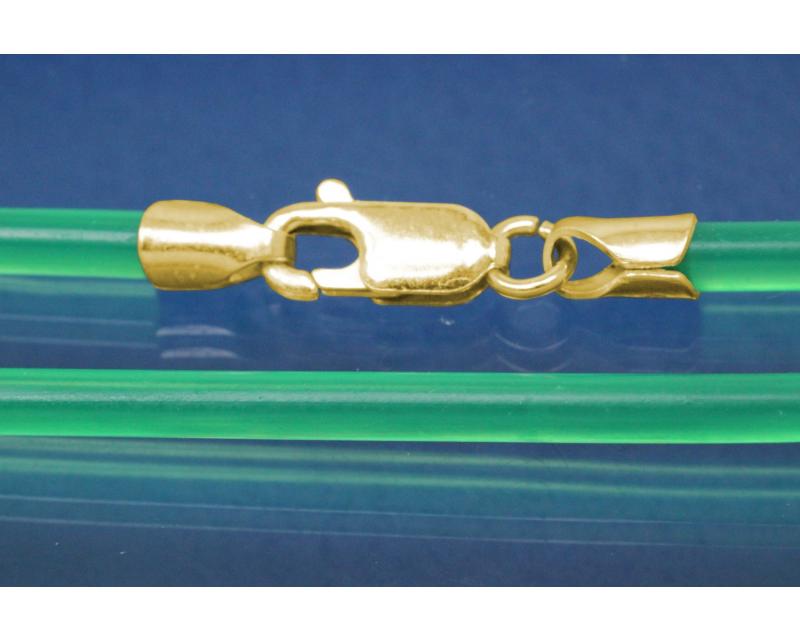 Collier, PVC-Kautschuk grün Ø3mm, mit Karabiner 925/- Silber vergoldet, Länge 60cm