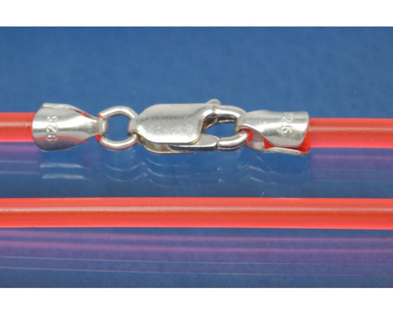 Collier, PVC-Kautschuk orange-rot Ø3mm, mit Karabiner 925/- Silber, Länge 50cm