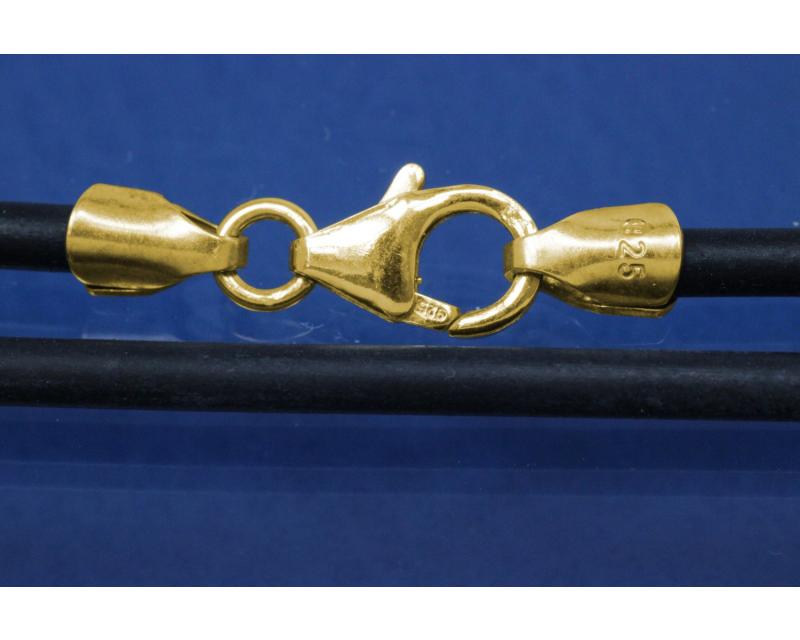Collier, Kautschuk schwarz Ø4mm, mit Karabiner 925/- Silber vergoldet, Länge 50cm