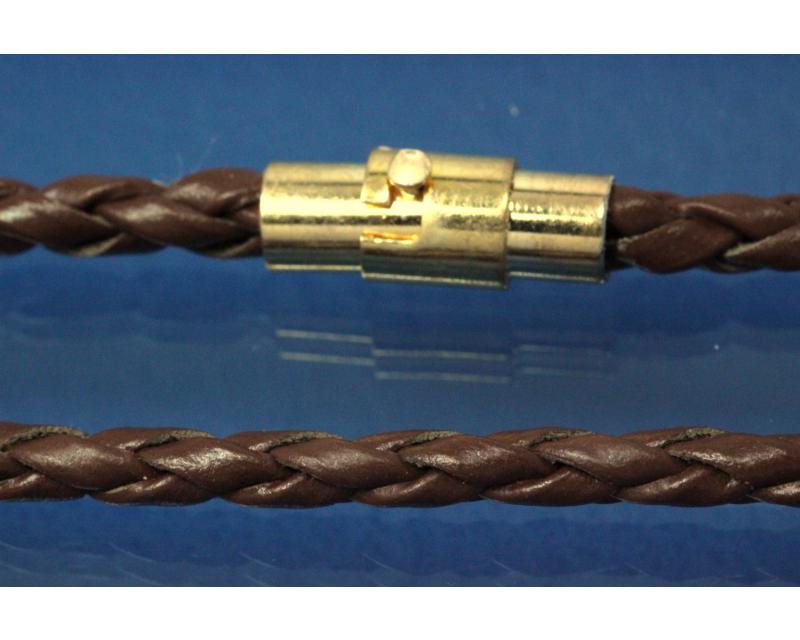 Collier, Lederkordel braun Ø3,5mm, Magnet-Bajonettverschluss goldfarben, Länge 60cm