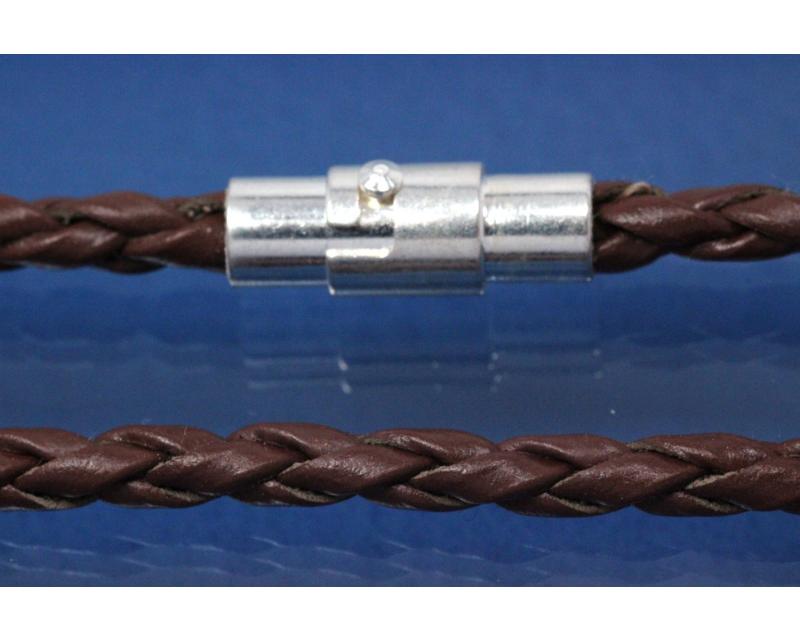 Collier, Lederkordel braun Ø3,5mm, Magnet-Bajonettverschluss silberfarben, Länge 50cm