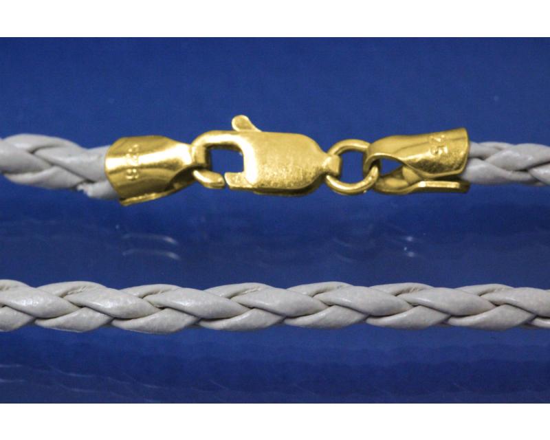 Collier, Lederkordel beige Ø3mm, mit Karabiner 925/- Silber vergoldet, Länge 45cm