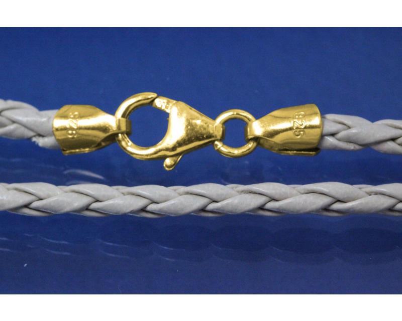 » » » » » » » Lederkordel-Collier Ø3mm, mit Karabiner 925/- Silber vergoldet, Länge 50cm