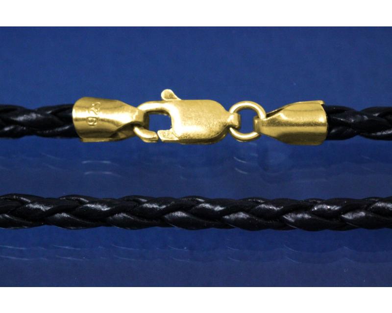 Lederkordel-Collier Ø3mm, mit Karabiner 925/- Silber vergoldet, Länge 50cm