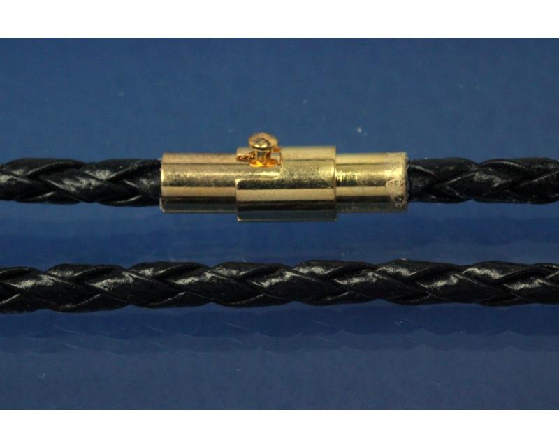 Collier, Lederkordel schwarz Ø3mm, Magnet-Bajonettverschluss goldfarben, Länge 45cm