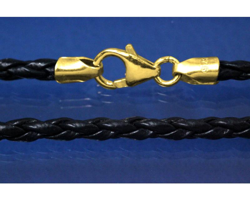 Lederkordel-Collier Ø3mm, mit Karabiner 925/- Silber vergoldet, Länge 45cm