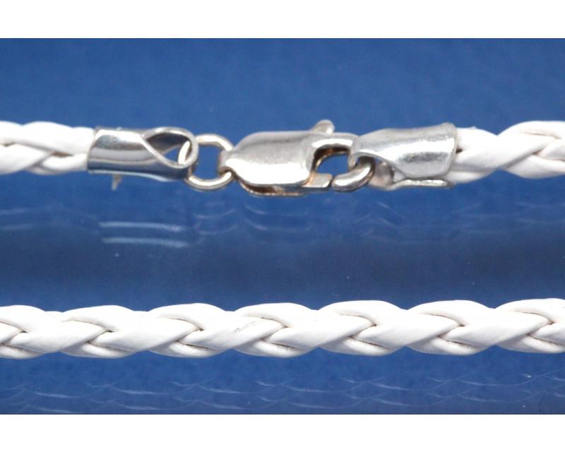 Collier, Lederkordel weiss Ø3mm, mit Karabiner 925/- Silber, Länge 45cm