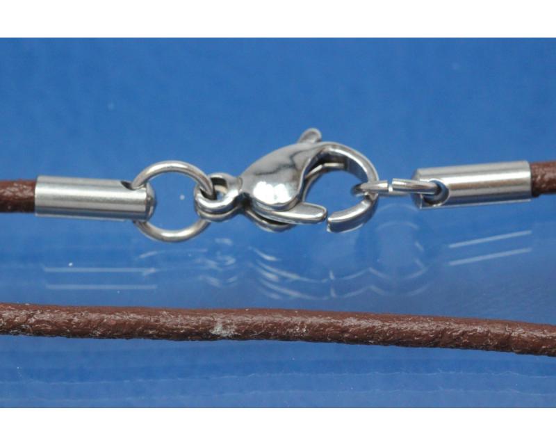 Lederschnur-Collier dunkelbraun Ø1,5mm, Edelstahl Karabiner, Länge 40cm