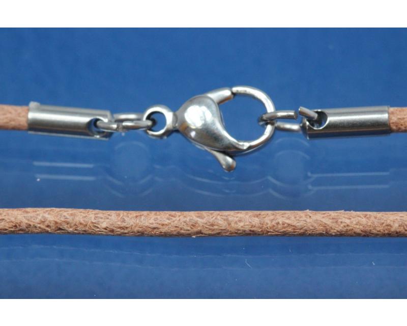 Collier, Lederschnur hellbraun/natur rund Ø1,5mm, mit Edelstahl Endkappen & Karabiner, Länge 55cm