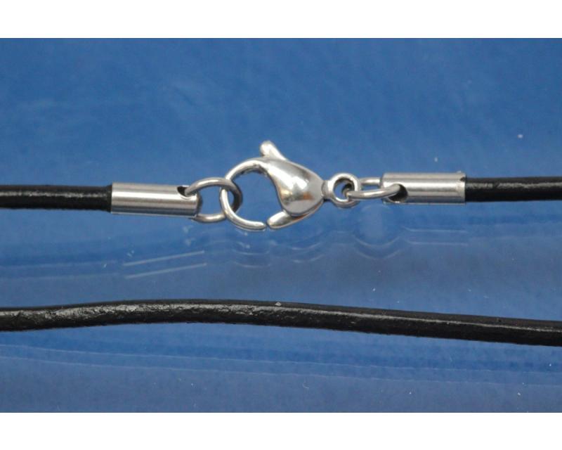 Collier, Lederschnur schwarz rund Ø1,5mm, mit Edelstahl Endkappen & Karabiner, Länge 42cm