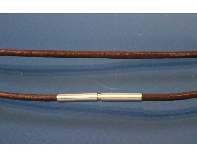 Collier, Leder-Rundschnur dunkelbraun ca. Ø2mm, mit Bajonettverschluss Edelstahl ca. AØ2,5mm, Länge ca. 60cm