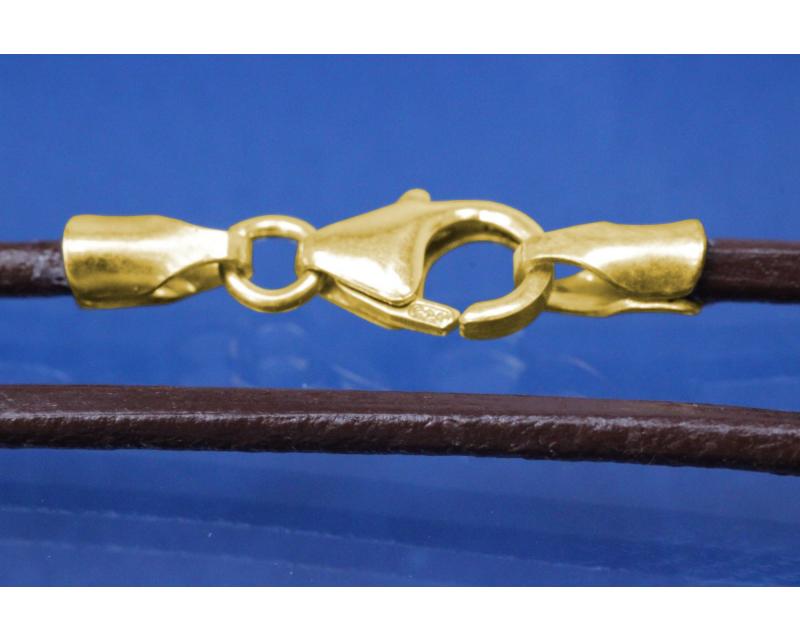 Collier, Lederschnur rund braun Ø2mm, mit Karabiner 925/- Silber vergoldet, Länge 45cm