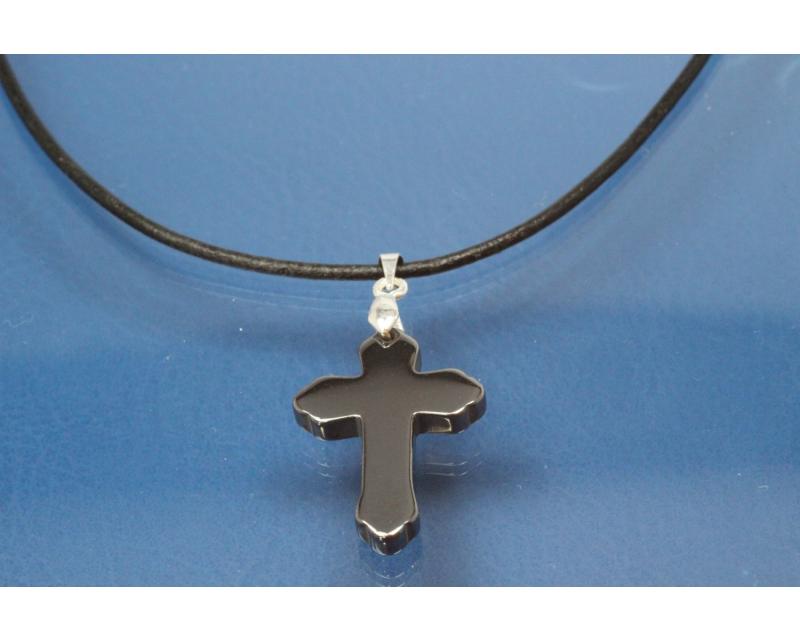 » » » » » Collier, Lederschnur Ø2mm, mit Hämatitanhänger Kreuz, Länge verstellbar von 32cm bis 60cm