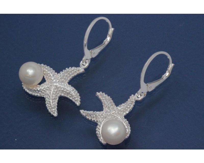 Ohrhänger Seestern mit SW - Perle 925/- Silber poliert, ca.Maße H 38mm incl. Brisur, B 22mm,mit SW-Perle ca.Maße Ø7,5mm. Die Oberfläche wurde poliert und zum Schutz des Grundmetalles 925/- Sterlingsilber und als zusätzlichen Anlaufschutz galvanisch mit hochwertigem Silber veredelt. Gewicht per Stück ca.3,7gr