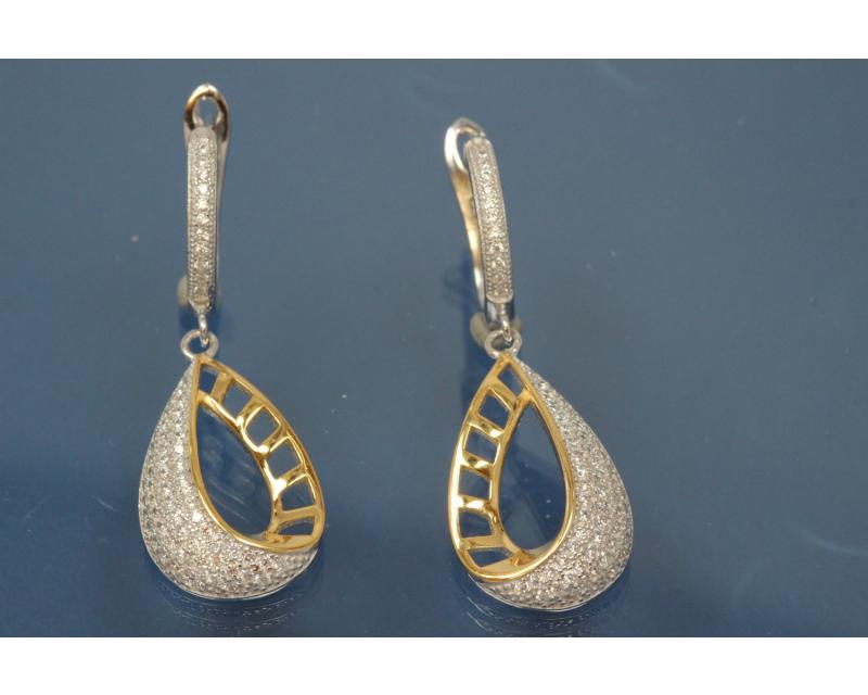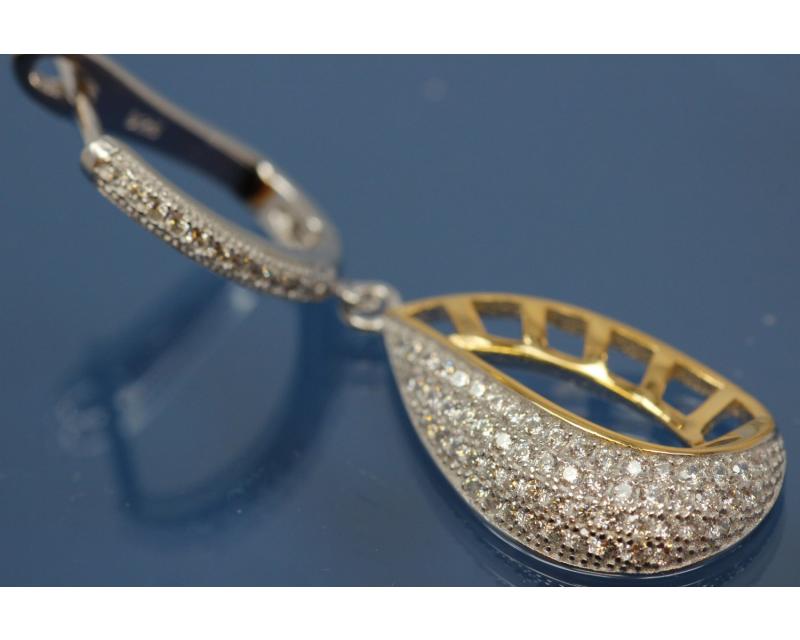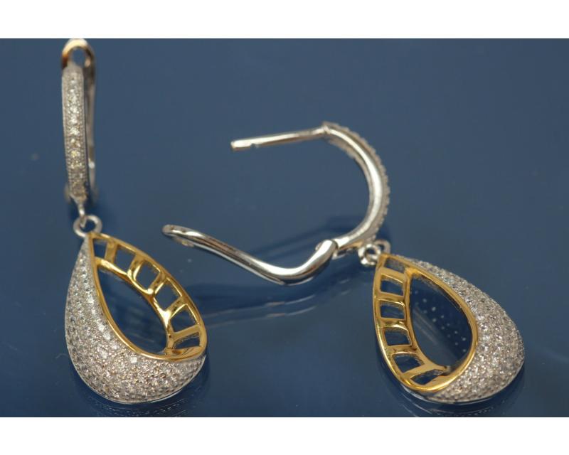 » » » » » Ohrhänger mit gefasster Brisur 925/- Silber ca. Maße H39,0mm incl. Brisur, B13,5mm rhodiniert / teilvergoldet mit Zirkonia.